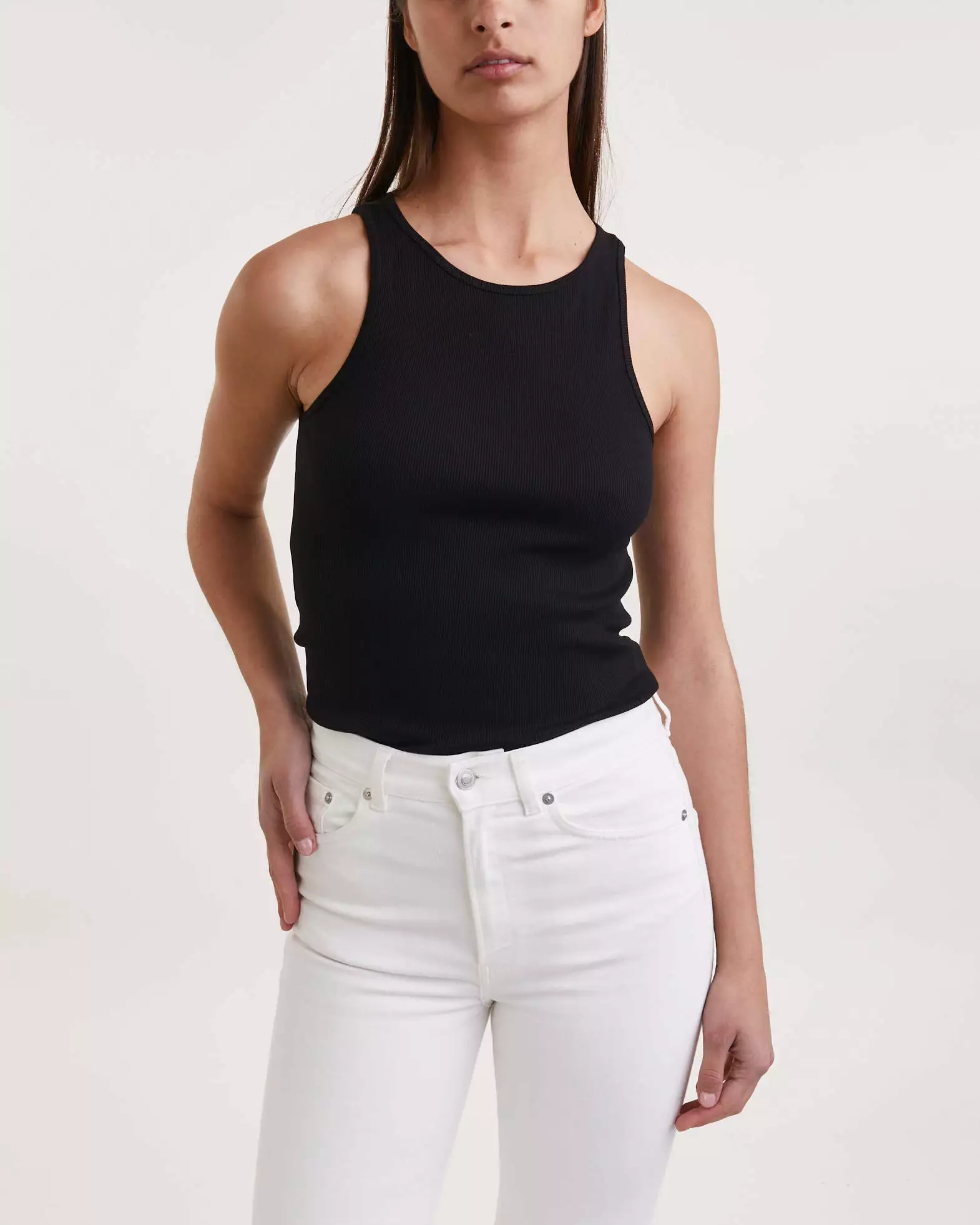 Topp Amani Tank från By Malene Birger. Elegant och stilren topp som har en lätt ribbad design och en rundad urringning. Den tighta passformen och ärmlösa designen gör den perfekt för lager-på-lager under jackor, koftor eller blazers. Oavsett om du klär upp eller ner, så är denna tank top ett måste för en modeframåt garderob. Produkten finns under kategorin W Sustain eftersom att den är tillverkad av hållbara material.